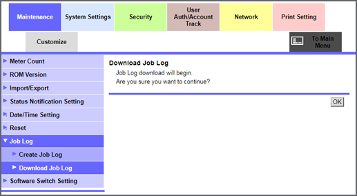 Descargue los datos del registro de tareas creado en [Crear registro de trabajos].