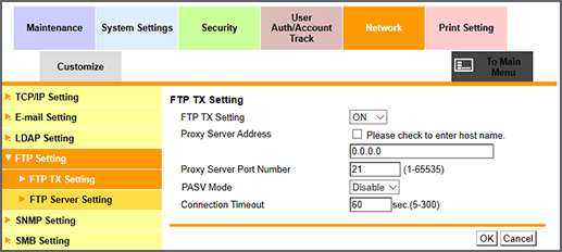 Puede configurar diversos ajustes relacionados con la función de envío FTP.