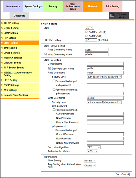 [SNMP v3(IP)] | Seleccione este casillero para utilizar SNMP v3. | |