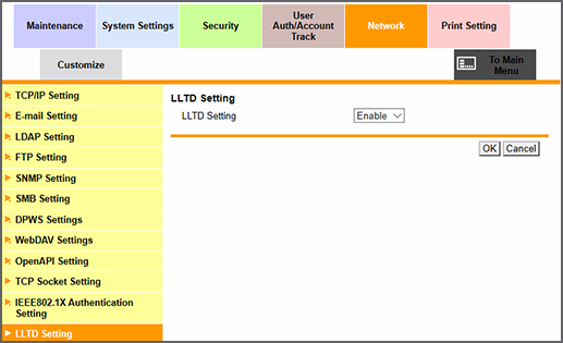 [Configuración LLTD] | [Activar] | Utiliza LLTD. |