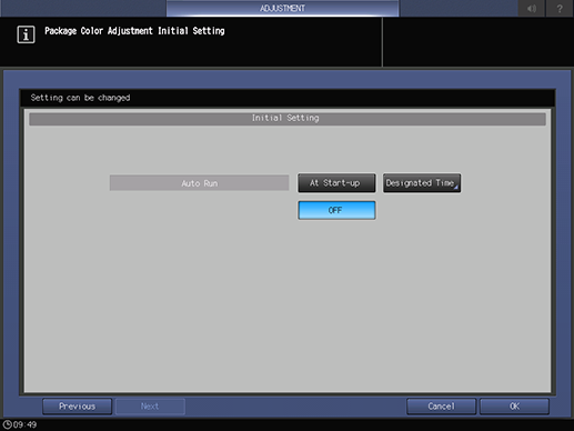 [Lancement auto] | [Au démarrage] | Effectue les réglages automatiquement une fois par jour lorsque le système est mis en marche. |