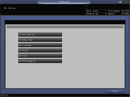 Écran tactile - [UNITÉ PRINC.] - [Contrôleur] - [Paramètre Impression Directe] - [Configuration PCL]