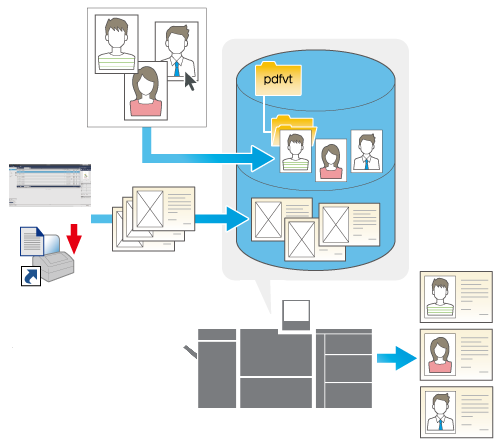 La fonction d'impression variable PDF/VT-2 ne gère qu'une partie d'un document à l'aide d'un fichier externe et combine ces parties à l'impression.
