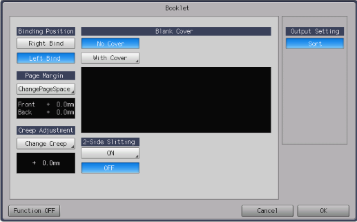 [Multi pli en 2] | Réglez sur [Activé] pour appliquer la fonction Pliage en 2 multiple à un livret. | |