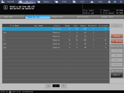 [Tot.orig.] | Affiche le nombre de pages de l'original pour la tâche de sortie réservée. |