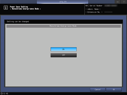 La fonction [Eco. énergie monochrome] peut s'appliquer dans les conditions suivantes. Après le passage de ces conditions en mode normal (mode priorité à la fixabilité), [Eco. énergie monochrome] est rétabli quand l'Interrupteur d'alimentation auxiliaire est mis sur Marche.