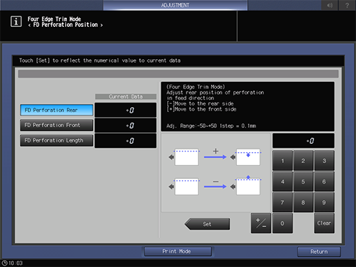 Adjust this when shifting occurs at the second position behind the perforation in the feed direction with [Four Edge Trim Mode].
