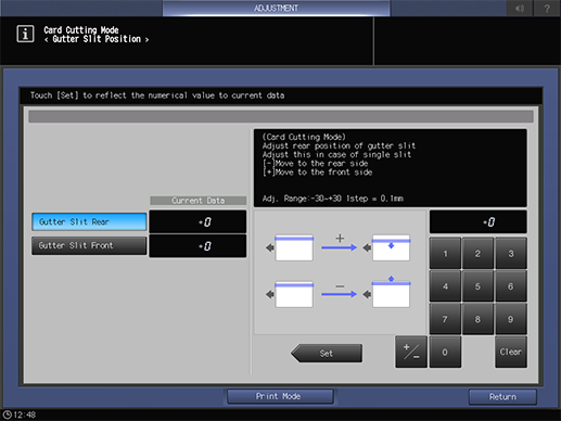 (-) To move the slit position in the front side, (+) To move the slit position to the rear side