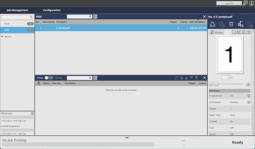 You can check the status or information of HDD store jobs, or perform operations such as printing, deletion, or recall on a hold job.