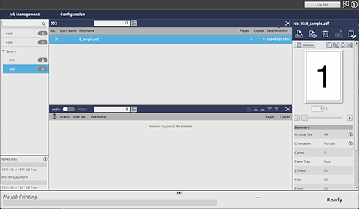 You can check the status or information of a secure job, or perform various operations such as printing, copying, or editing.