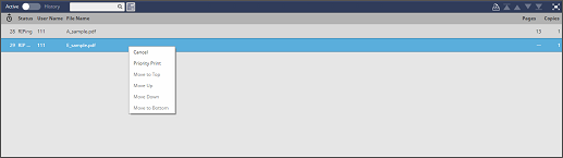 [Move to Top] | Changes the printing priority to the top. You can also click " |