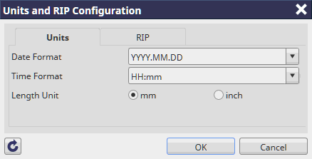 Configure settings related to the date/time display format, length unit, and RIP operation for job uploading.