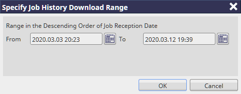 The date and time specified in the [Specify Job History Download Range] window are displayed.