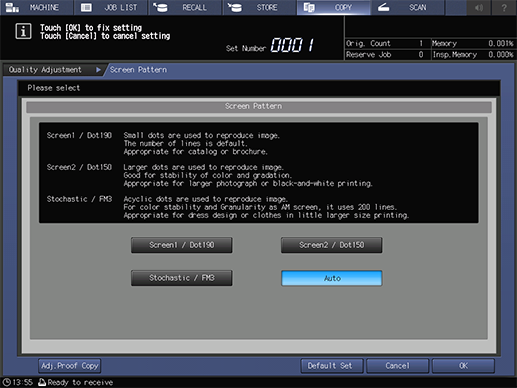 In general, set to [Auto] to automatically select the screen appropriate for [Type] and [Color]. When you cannot obtain the desired image quality using [Auto], manually change the screen.