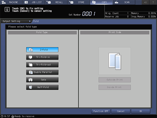 If an option other than [Z-Fold] is selected, you can select whether to set the print side inside or outside.