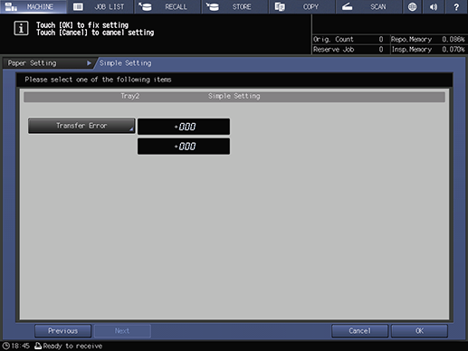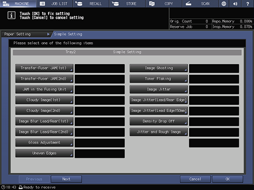 Touch panel - [MACHINE] - [Paper Setting] - [Adjustment] - [Simple Setting]
