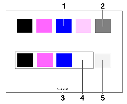 Example: If the current value is +100, the adjustment values are set to +60, +80, +100, +120, and +140, so the charts for +140 and +120 are not output. - Each chart is printed with "Front" (front side) or "Back" (back side) in addition to the adjustment value.