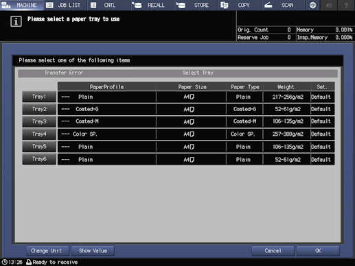 Press in order of [Adjustment] - [Next] - [Transfer Error].