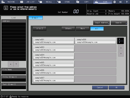 [From Address Setting] | Set the sender's email address when sending data by email. |