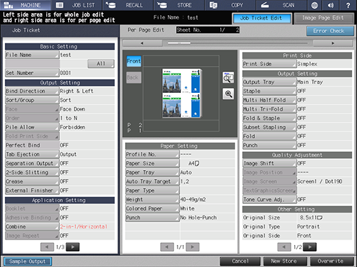 If you press [Bind Direction] in [Output Setting], you should be able to select [Right&Left] or [Top] from the menu list.