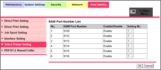 [Setting No] | Select the desired printer setting number from the menu list. Range: 1 to 6 |