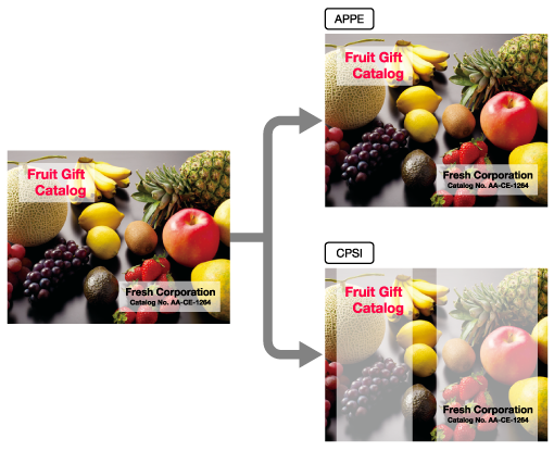 - When printing using the printer driver, transparency effects cannot be reproduced as the CPSI (Configurable PostScript Interpreter) performs RIP processing. Select APPE if you want to reproduce transparency effects when printing.