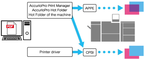 To print using AccurioPro Print Manager / machine hot folders / AccurioPro Hot Folder, select APPE on the system.
