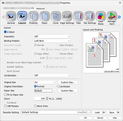For details about the settings, refer to the [Layout] tab settings (described after the procedure).