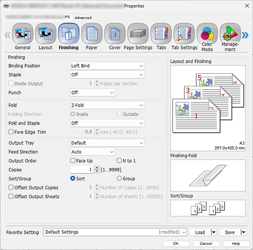 Select the [Finishing] tab, and set [Fold] to [Z-Fold].