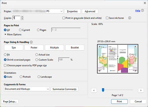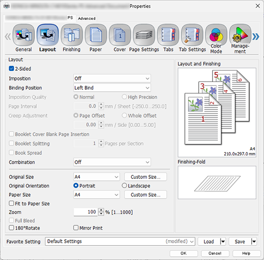 This section describes the procedure for making 2-sided prints of A4-sized 1-sided originals onto A4-sized paper with a Tri-fold-in finish using the PS Plug-in Driver.