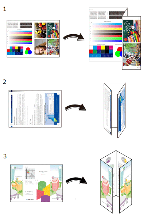 Perform a 2-sided print of an original, and finish it with a folding unit. This section describes the procedures for the following 3 fold types.