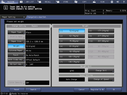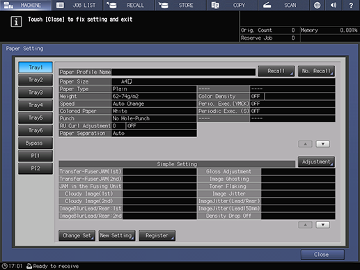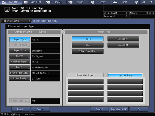 Select [Bypass] on the [Paper Setting] screen, and press [Change Set].