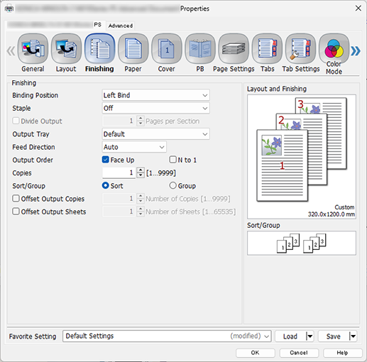 Select the [Finishing] tab, and add a check mark to [Face Up] in [Output Order].