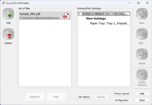 Adding printers and configuring settings using AccurioPro Hot Folder allows you to print by simply adding files to the main screen