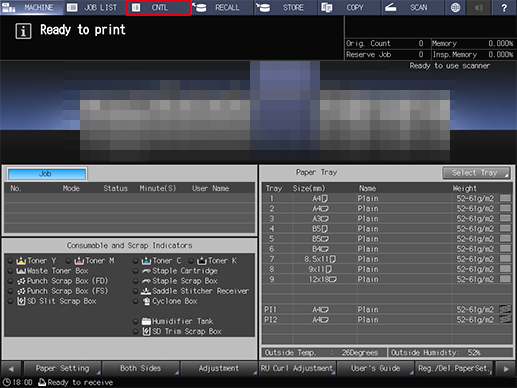 AccurioPro Print Manager can be operated from [CNTL] on the system’s Touch panel, or from the browser on a network-connected computer.
