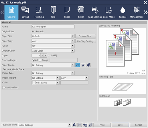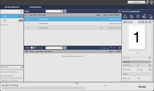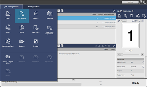 Use AccurioPro Print Manager to edit the print settings of hold jobs or secure jobs stored on the Image Controller HDD.
