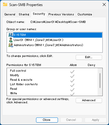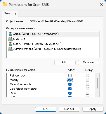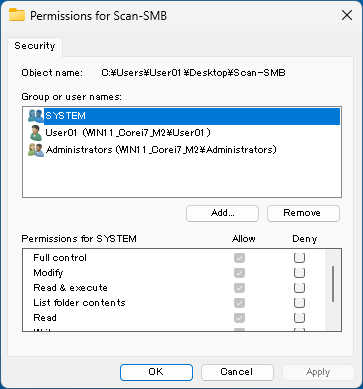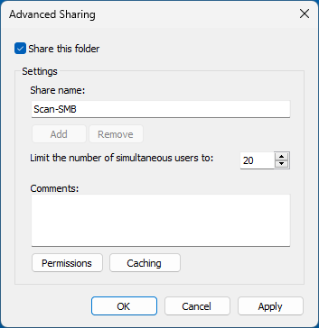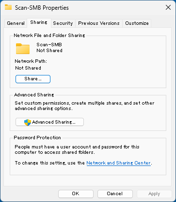 Example: Create a "Scan-SMB" folder on the Windows desktop.