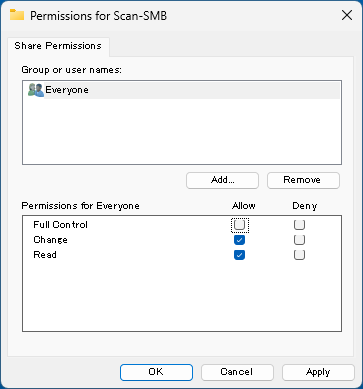 If the group or user you want to grant access to is not displayed, click [Add], and then add the user or group.