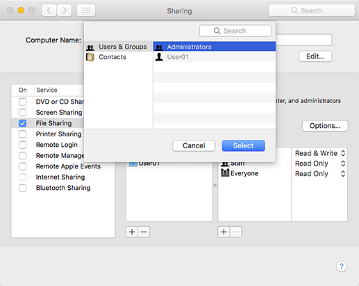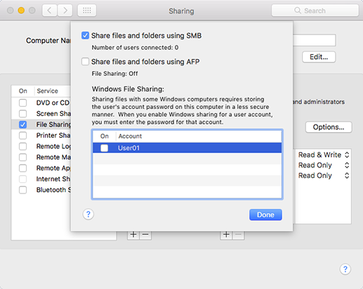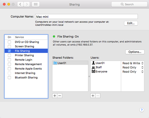 By default, users specified in your Macintosh's [Users & Groups] settings can connect to the Macintosh via a network.