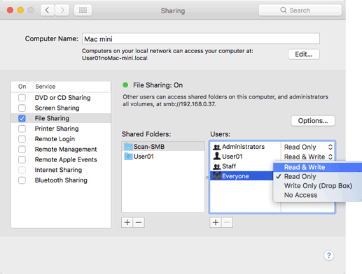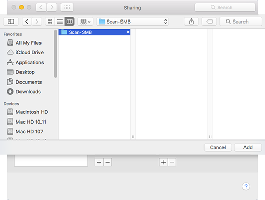 Example: Create a "Scan-SMB" folder on the Macintosh desktop (Mac OS X).