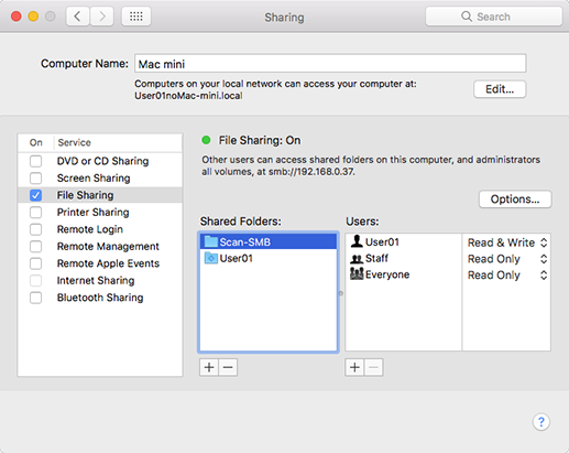 Create shared folders on a Macintosh computer. Scan data from the system is sent to the shared folders and shared with the client computer.