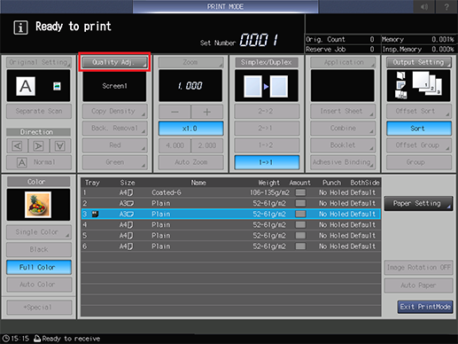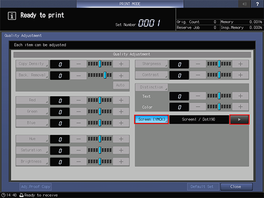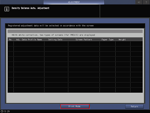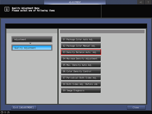 For details about the [Density Balance Auto. Adjustment] screen, refer to Setting Items (With Intelligent Quality Optimizer IQ-601 Mounted).