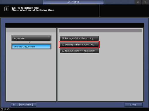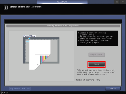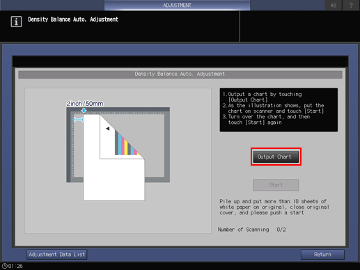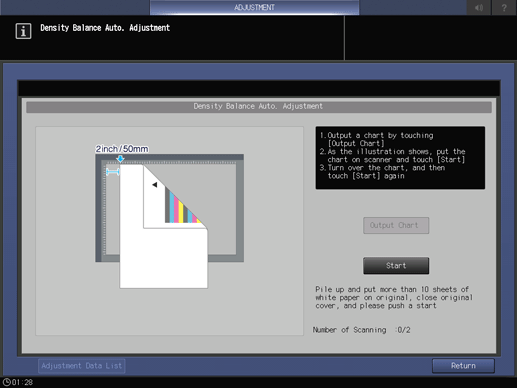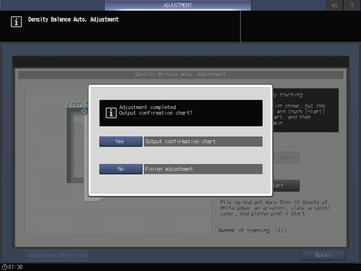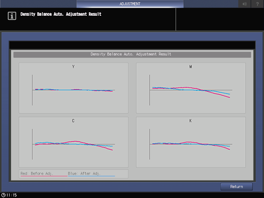 Charts are output, and [Density Balance Auto. Adjustment] screen is displayed.