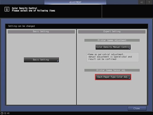 For details about [Each Paper Type Color Adj.], refer to [Each Paper Type Color Adj.].