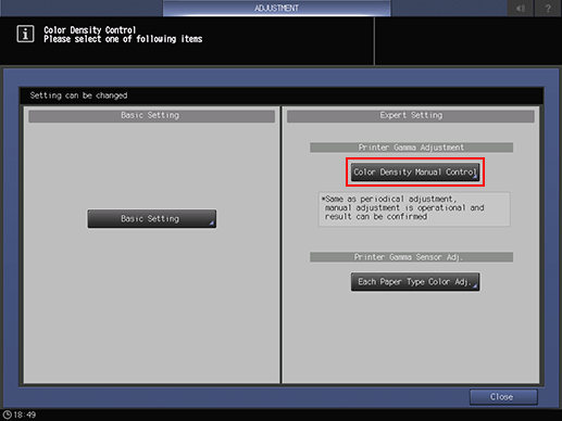 For details about [Color Density Manual Control], refer to [Color Density Manual Control].
