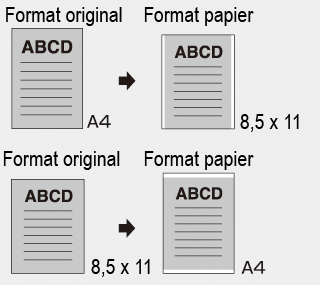 Utilisez ce réglage pour ajuster le document imprimé sur la page en cas de différence entre le format original et le format papier.