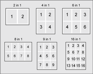 Vous pouvez imprimer 2, 4, 6, 8, 9 ou 16 sur une feuille de papier.