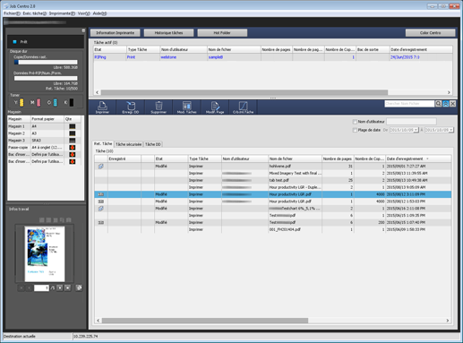 Sélectionnez une tâche dans la liste de tâches actives sur l'écran [Job Centro].