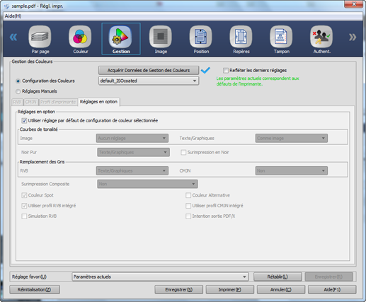 Vous pouvez définir la gestion des couleurs du réglage d'impression.