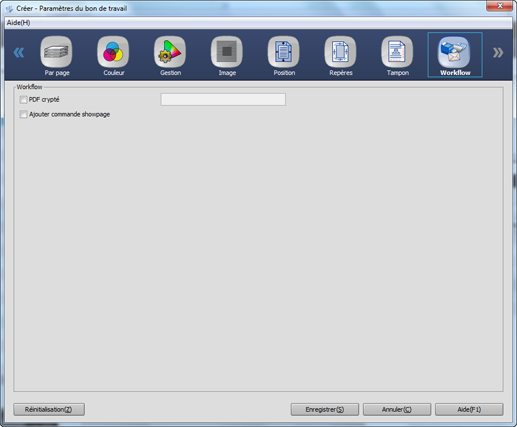 [PDF crypté] | Cochez cette case pour sortir un travail sous forme de PDF crypté. Saisissez un mot de passe de 32 caractères à un octet max. Le mot de passe s'affiche avec des "*" ou des "●". |